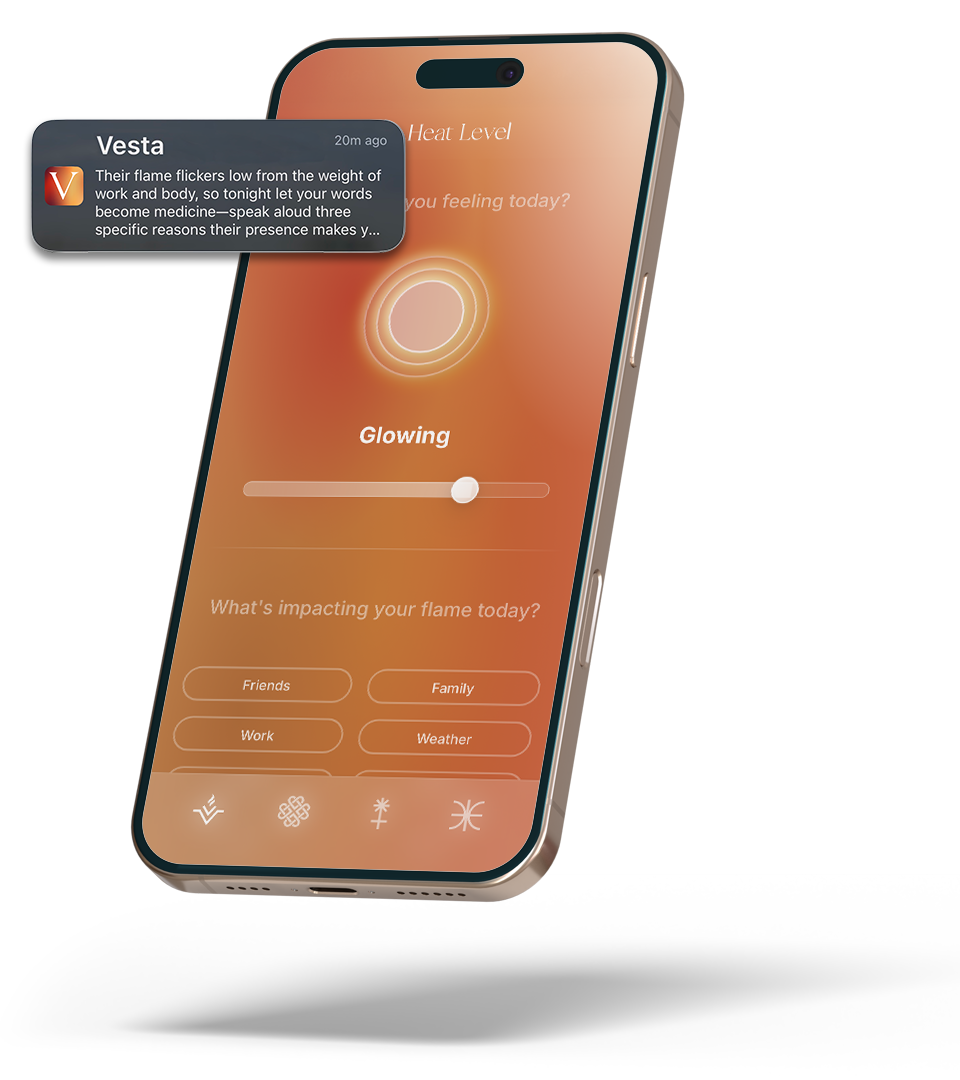 Most relationships don’t fail from lack of love; they fade from lack of tending. Vesta is built for couples who want to keep the flame alive, and for anyone who believes connection is worth fighting for.